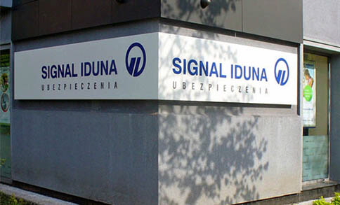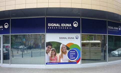 wg standardów graficznych marki Signal Iduna.Produkcja i montażIdentyfikacja zewnętrzna i wewnętrzna placówek