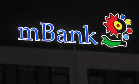 wielkogabarytowych znaków Banku mBank na elewacji