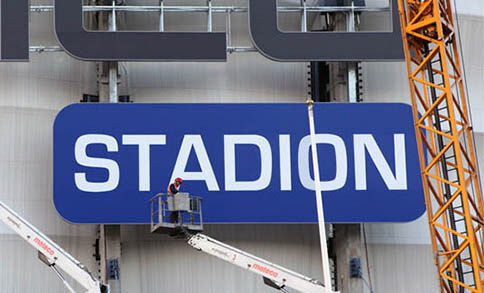 KreacjaProjekt i wizualizacja znaków przestrzennych LOGO INEA na elewacji stadionu “INEA stadion”w Poznaniu.Produkcja i montażwielkogabarytowych elementów LOGO INEA stadion.