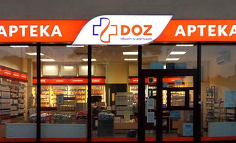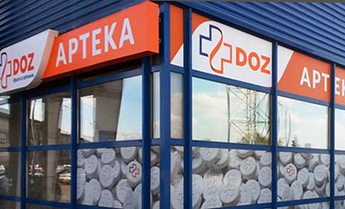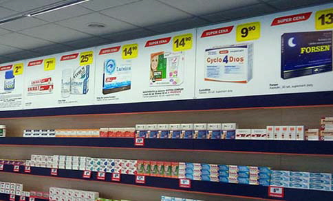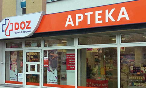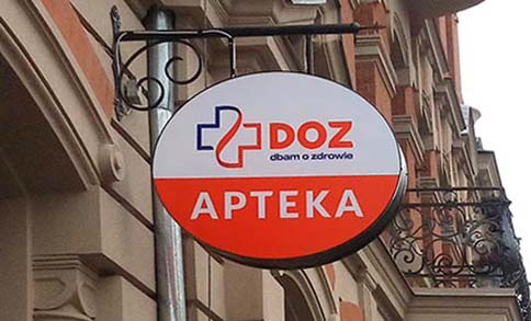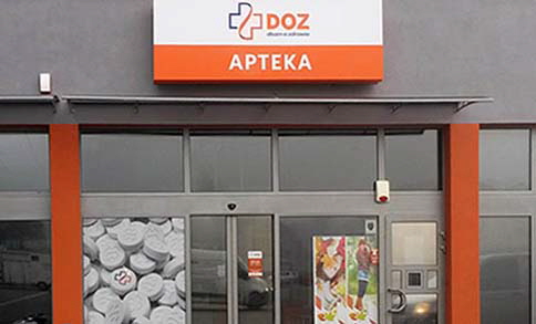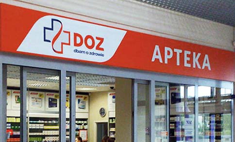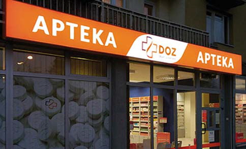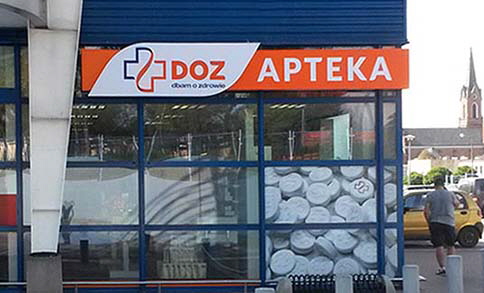 Produkcja i montażWymiana i uzupełnienie identyfikacji dla 230 aptek własnych i partnerskich PGF - PELION.Realizacja elewacji - attyki wejścia budynku siedziby PGF.